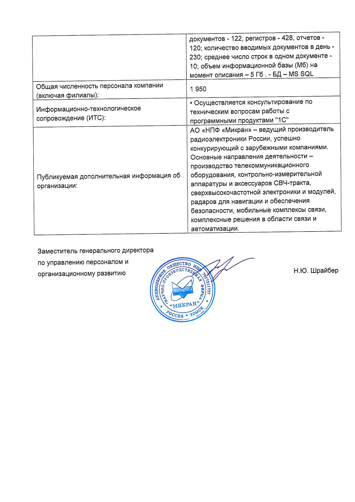 Внедрение информационной системы кадрового учета и расчета заработной платы на базе «1С: Зарплата и управление персоналом 8 КОРП, ред. 3.1» в АО «НПФ «Микран»Особенности и уникальность проекта